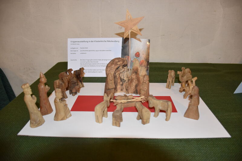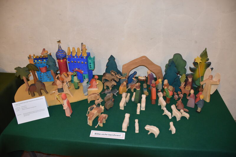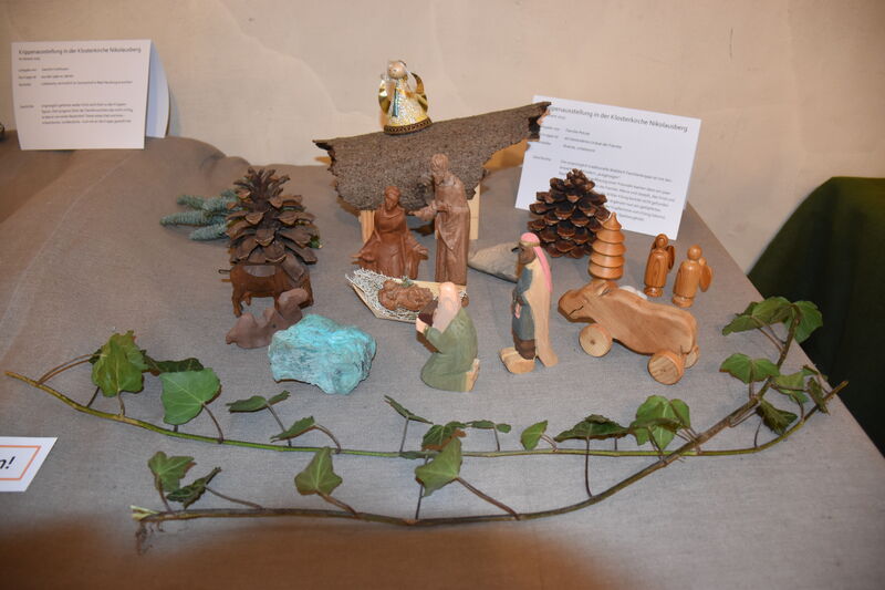 Zu den ältesten Exponaten gehört eine große Gipskrippe von einer älteren Dame aus Nikolausberg. Sie ist ca. 120 Jahre alt und seitdem in Familienbesitz. „Da sie keine Erben hat, sucht sie für die Krippe ein liebevolles Zuhause“, berichtet Kirchenpädagogin Birgit Hecke-Behrends, die die Idee zu der Ausstellung hatte. Bereits jetzt hätten sich mehrere Interessent:innen gemeldet, freut sich die Nikolausbergerin.