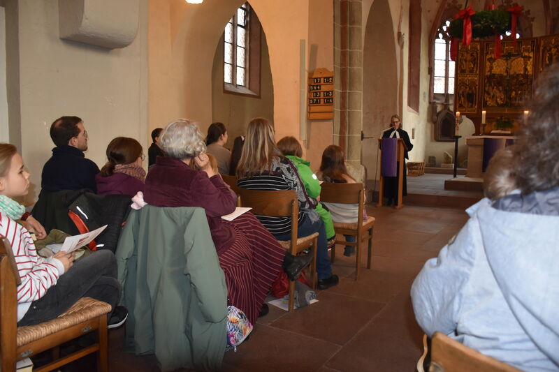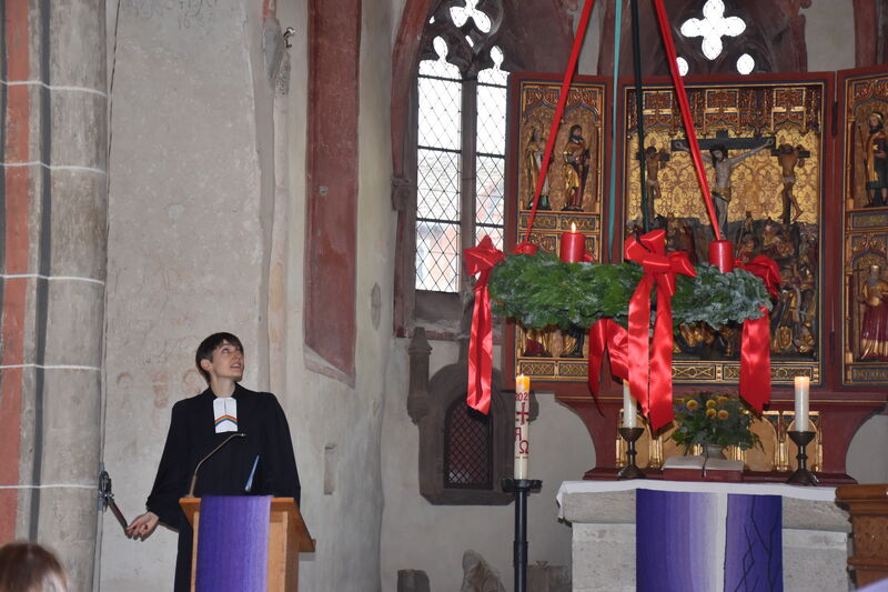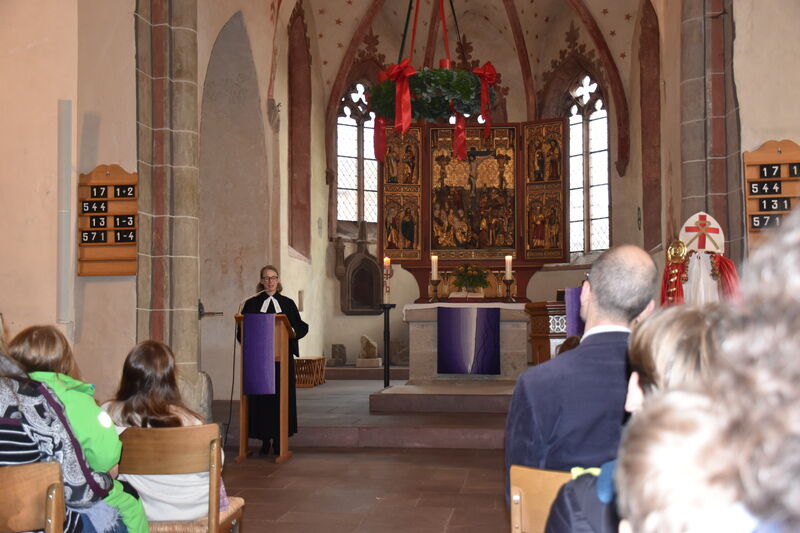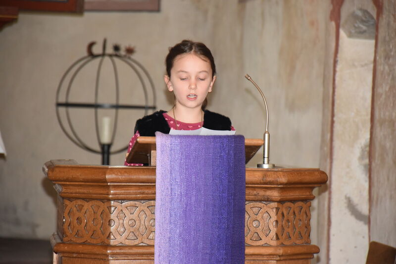 Vor den Gottesdienstbesucher:innen ließen Carolin, Lene und Margo das Jahr 2025 noch einmal Revue passieren. In ihrer Amtszeit haben sie Kindergottesdienste mitgestaltet, einen Stand beim Oktobermarkt betreut (Knetseife mit Kindern hergestellt und für einen guten Zweck verkauft), beim Sommerfest einen Aktivitätenstand für Kinder betreut und sich die Aktionen dazu ausgedacht, waren verantwortlich für den Weihnachtsbasar im Anschluss des Gottesdienstes am 7. Dezember und haben beim lebendigen Adventskalender mitgemacht. Außerdem haben sie den kinderfreundlichsten Menschen von Nikolausberg ernannt. Sandra Benderoth (Mitglied des Fördervereins der Janusz-Korzak-Schule) ist ausgezeichnet worden. Sie engagiert sich ehrenamtlich auf vielfältige Weise und durch ihre Mitwirkung wurden viele tolle Sachen für die Schulkinder angeschafft.