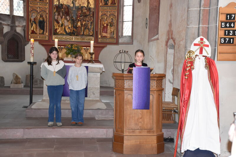 In der St. Nikolausgemeinde im Göttinger Stadtteil Nikolausberg sind am Sonntag (7. Dezember) drei neue Kinderbischöfinnen in ihr Amt eingeführt worden. Die drei Mädchen im Alter von 8 Jahren besuchen die die Janusz-Korczak-Schule. Cosima, Sophia und Tamy werden sich nun ein Jahr lang für die Belange von Kindern in Nikolausberg einsetzen. Begleitet werden sie von den zwei Patinnen Tina Garea Rodriguez und Susanne Knoke.